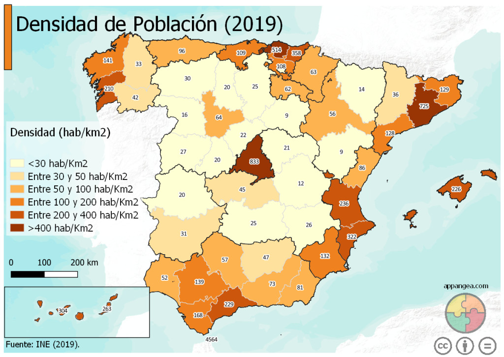 Densidade de poboación: é o promedio de persoas que habitan nun territorio por kilómetro cadrado.
